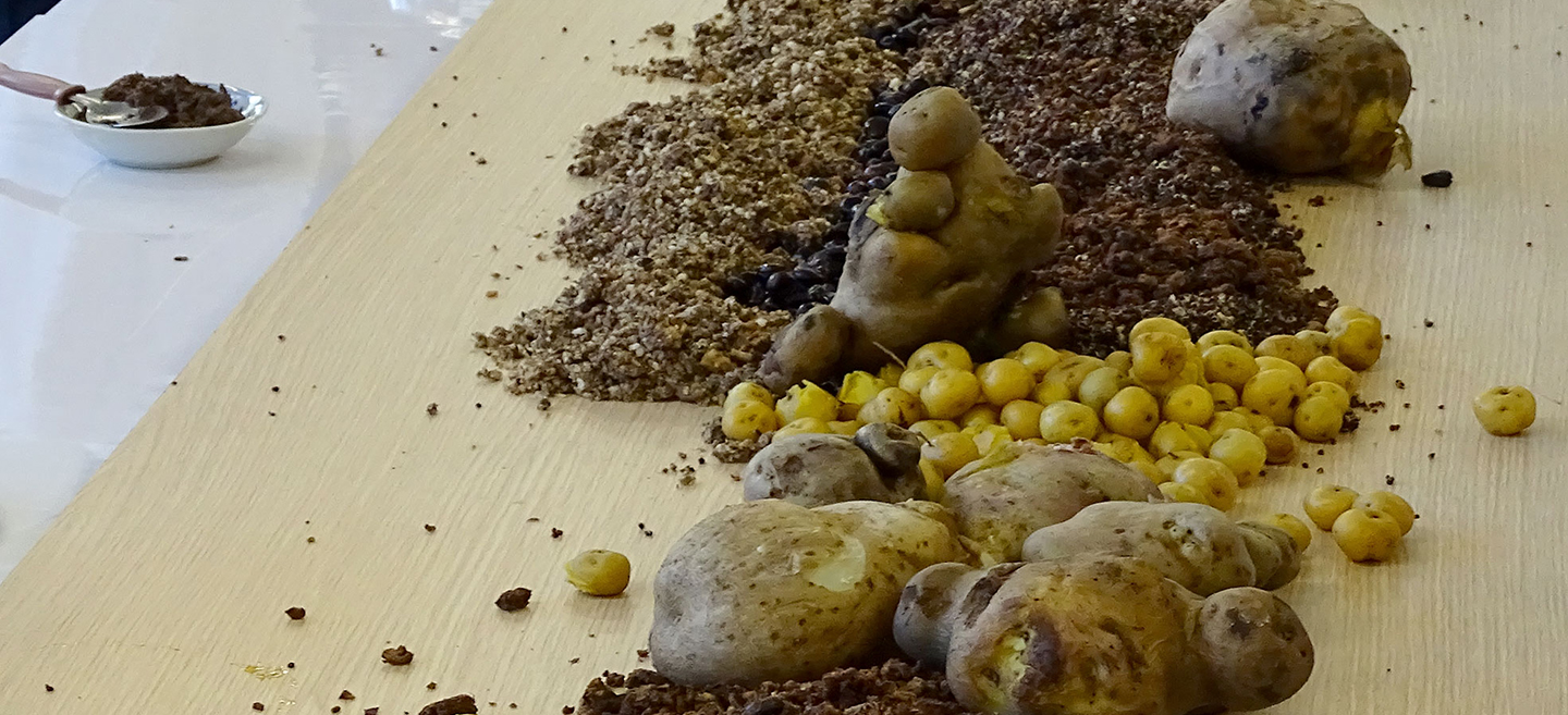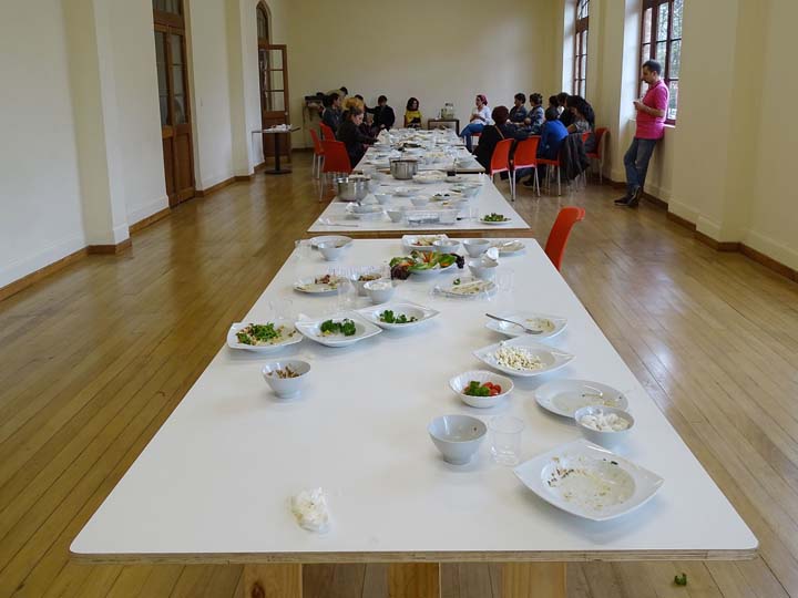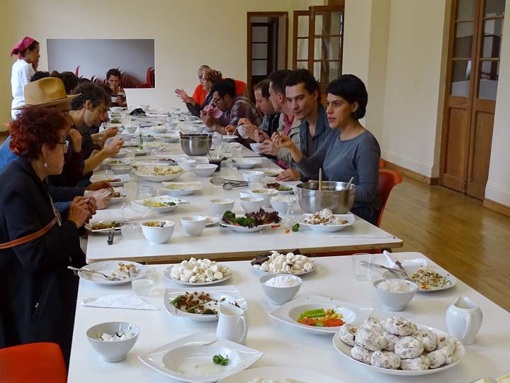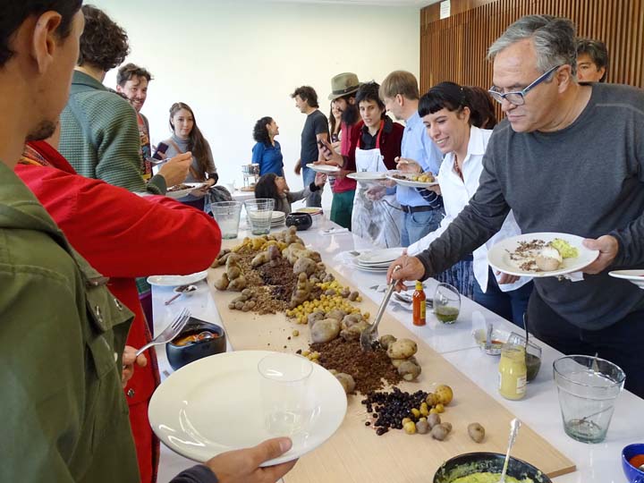 Dado que históricamente el banquete ha sido el lugar para desplegar la riqueza de personas y gobiernos, una ocasión para ostentar, tanto como para hacer declaraciones públicas, escogimos esta figura para contraponerla a la exigencia nunca cumplida de austeridad, pregonada desde poderes civiles y religiosos. Así, propusimos la realización de unos “banquetes austeros”. Banquetes paradójicos que se distancian de la cocina “estetizada”, la que envuelve la comida en un elaborado vocabulario gourmet, convirtiéndola en un objeto de consumo refinado, con un valor excesivo y un enrarecimiento que enmascara el inequitativo sistema económico mundial de alimentos.