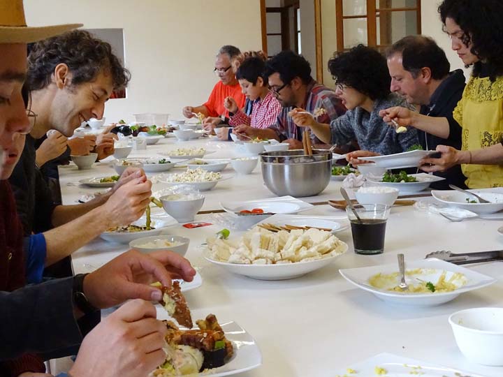 La serie Nosotros los comensales, se compuso de cuatro encuentros: un simposio y tres “banquetes austeros”, realizados entre agosto de 2015 y abril de 2016. Estos encuentros partieron de una constelación de reflexiones sobre los alimentos que cada artista, María Buenaventura y Liliana Sánchez, había trabajado por separado en su obra: las divisiones que hacemos del mundo natural -entre lo vivo y lo inerte, entre lo comible y lo incomible-, la historia de las técnicas y costumbres culinarias y las implicaciones políticas y sociales que tiene el hecho de sentarse a la mesa.