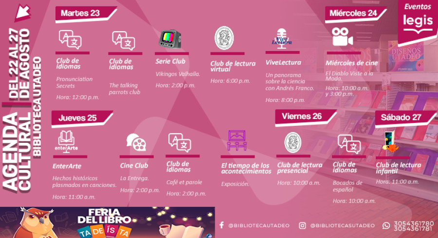 Agenda cultural de tu Biblioteca UTadeo de la semana del 22 al 27 de agosto.