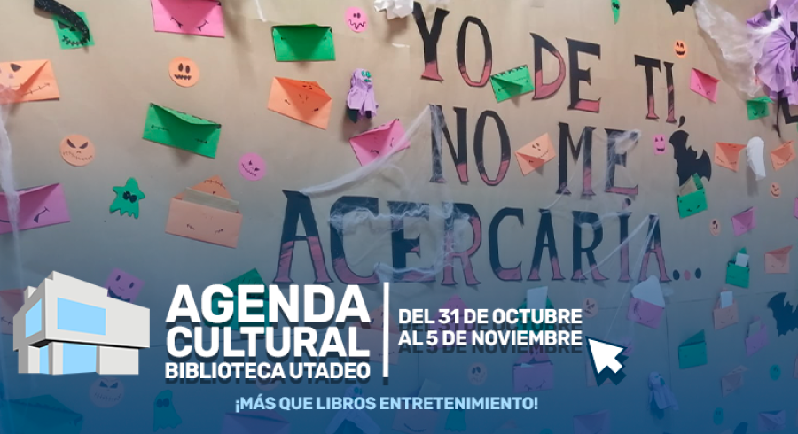 DestacadasAgenda cultural semanal - Biblioteca UTadeo Compartir en Lunes, Octubre 31, 2022Agenda cultural semanal Prográmate con los eventos que trae el Sistema de Bibliotecas UTadeo del 31 de octubre al 5 de noviembre biblioplazoleta_-_cabito_fest_-_cabezote.png Club de idiomas: Pronuntiation Secrets Martes, 1 de noviembre Biblioteca UTadeo - Piso 3 - Sala de Idiomas 12:00 p.m. - Evento PresencialSerie Club: Liverpool Vs. Napoli Martes, 1 de noviembre Biblioteca UTadeo - Piso 2 2:00 p.m. - Evento Presencial Reclama palomitasClub de lectura Martes, 1 de noviembre Google Meet 6:00 p.m. - Evento Virtual vivelectura_portada.png 1_mc_madame_curie_radioactiva_-_portada.png Vivelectura Martes, 1 de noviembre Emisora HJUT 106.9 FM Estéreo 6:00 p.m. - Programa de radialMiércoles de cine: Madame Curie Miércoles, 2 de noviembre Biblioteca UTadeo - Piso 4 - Sala de Cine 10:00 a.m. y 3:00 p.m. - Evento PresencialClub de idiomas: The Talking Parrots Club Miércoles, 2 de noviembre Biblioteca UTadeo - Piso 3 - Sala de Idiomas 2:00 p.m. - Evento Presencial 1_cc_-_gravedad_-_portada.png Enterarte Jueves, 3 de noviembre Óyeme UTadeo 11:00 a.m. - Programa radialCine Club: Gravedad Jueves, 3 de noviembre Biblioteca UTadeo - Sala de Cine, Piso 4 2:00 p.m. - Evento Presencial Reclama palomitasClub de lectura Viernes, 4 de noviembre Biblioteca UTadeo - Piso 3 10:00 a.m. - Evento Presencial biblioplazoleta_-_cabito_fest_portada.png Cabito Fest Viernes, 4 de noviembre Biblioteca UTadeo - Piso 3 2:00 p.m. - Evento PresencialClub de lectura infantil Sábado, 5 de noviembre Google Meet 11:00 a.m. - Evento Virtual encuesta_-_cabezote2.png