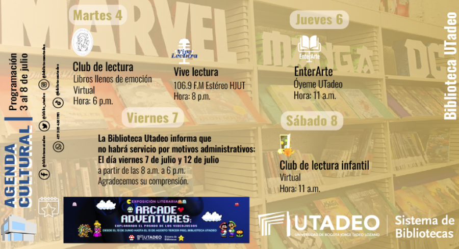 Prográmate con los eventos que trae el Sistema de Bibliotecas UTadeo del 3 al 8 de julio 2023