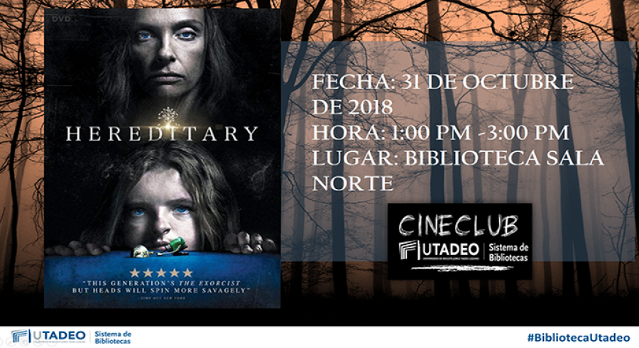 DestacadasCineClub Hereditary Compartir en Miércoles, Octubre 31, 2018Pieza Gráfica: Claudia Loaiza - Biblioteca