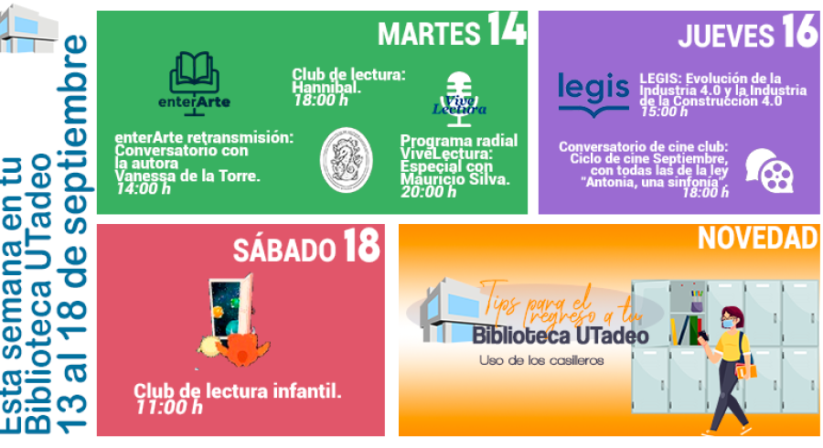 Esta semana en tu Biblioteca UTadeo del 13 al 18 de septiembre.