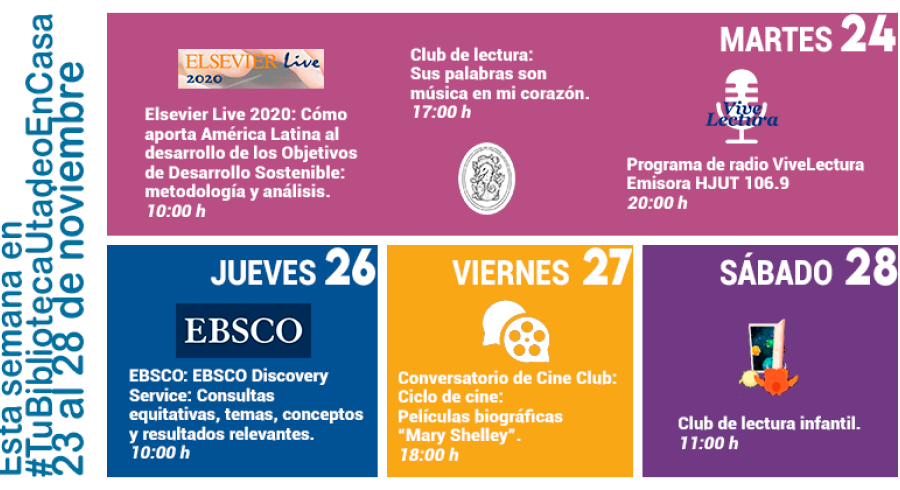 Esta semana en #TuBibliotecaUtadeoEnCasa del 23 al 28 de noviembre.