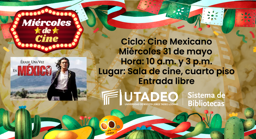 DestacadasMiércoles de cine: Érase una vez en México Compartir en Miércoles, Mayo 31, 2023Programación ciclo mexicano 2023.Te invitamos a disfrutar la película “Érase una vez en México" Fecha: Miércoles, 31 de mayoCiclo: Cine mexicanoHora: 10 a.m. y 3 p.m.Lugar: Sala de cine, cuarto pisoEntrada libreTrailer:
