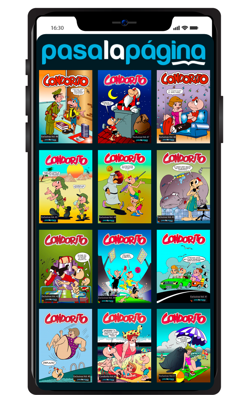 1. Ingresa a la página de la Biblioteca UTadeo. 2. Despliega el menú 'Bases de datos'. 3. Selecciona la opción 'Todas nuestras bases de datos'. 4. Selecciona el recurso 'PasaLaPágina'. 5. Ingresa tus credenciales tadeístas. 6. Clic en la revista 'Condorito'.