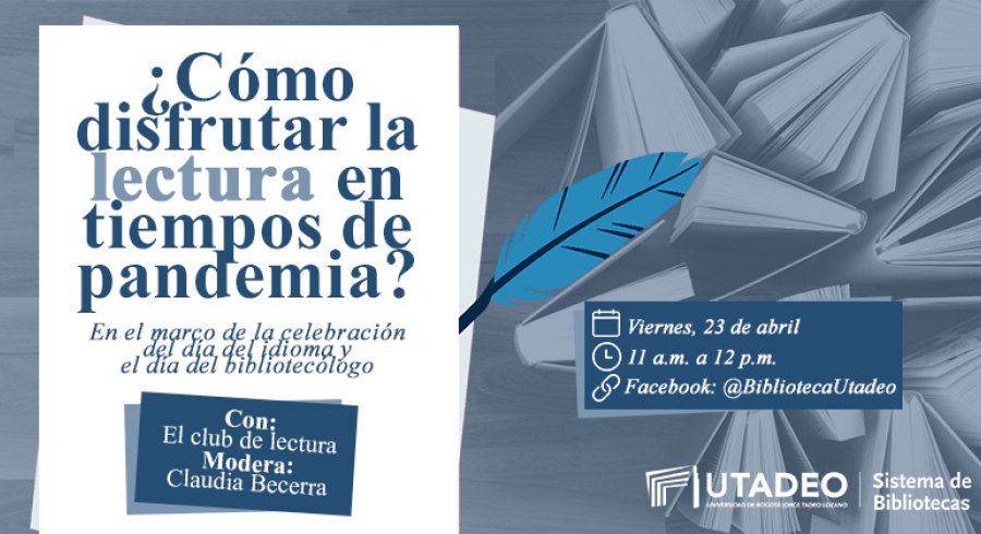 En el marco de la celebración del día del idioma y el día del bibliotecólogo acompáñanos el próximo vieres 23 de abril a las 11:00 a.m. en nuestra charla ¿Cómo disfrutar la lectura en tiempos de pandemia? a través de Facebook @bibliotecautadeo