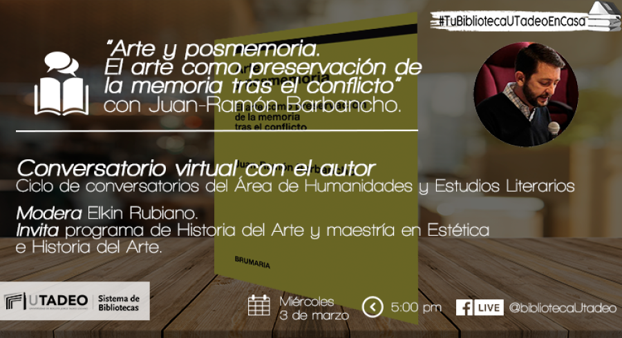 Conversatorio del libro "Arte y posmemoria. El arte como preservación de la memoria tras el conflicto" con su autor Juan-Ramón Barbancho. Investigador y curador independiente, Córdoba (España).