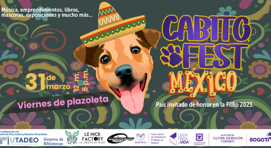 En la plazoleta principal de nuestra universidad, se llevará a cabo “Cabito Fest”, un espacio cultural liderado por el Sistema de Bibliotecas Utadeo que tiene como objetivo fortalecer la agenda cultural del sector, visibilizar a nuestros emprendedores, generar un acercamiento con nuestros vecinos y nuestra comunidad universitaria y además dar a conocer todos los servicios y productos del Sistema de Bibliotecas en una tarde divertida con diferentes actividades artísticas, creativas y recreativas. Como siempre las mascotas tendrán un espacio privilegiado liderado por nuestro Cabito y su amiga Canela.