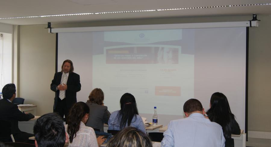 El pasado 15 de agosto los estudiantes del Programa de Derecho tuvieron la oportunidad de escuchar y conversar con el tratadista, profesor y juez argentino Carlos Rozanski, presidente de los Tribunales Orales en lo Criminal Federal de La Plata, sobre temas relacionados con Derecho Penal, abuso infantil y la convención de los derechos del niño.