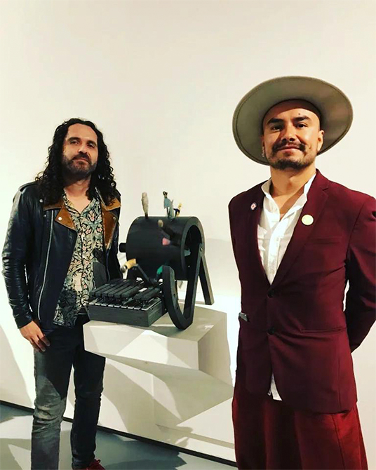 Leonel Castañeda y Carlos Castro, los arúspices del siglo XXI, estuvieron en la inauguración de la exposición Arúspices, una selección de sus obras de la colección Proyecto Bachué que se presentará hasta el 11 de septiembre en el Museo de Artes Visuales de la Universidad Jorge Tadeo Lozano.