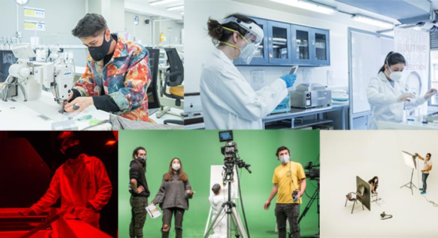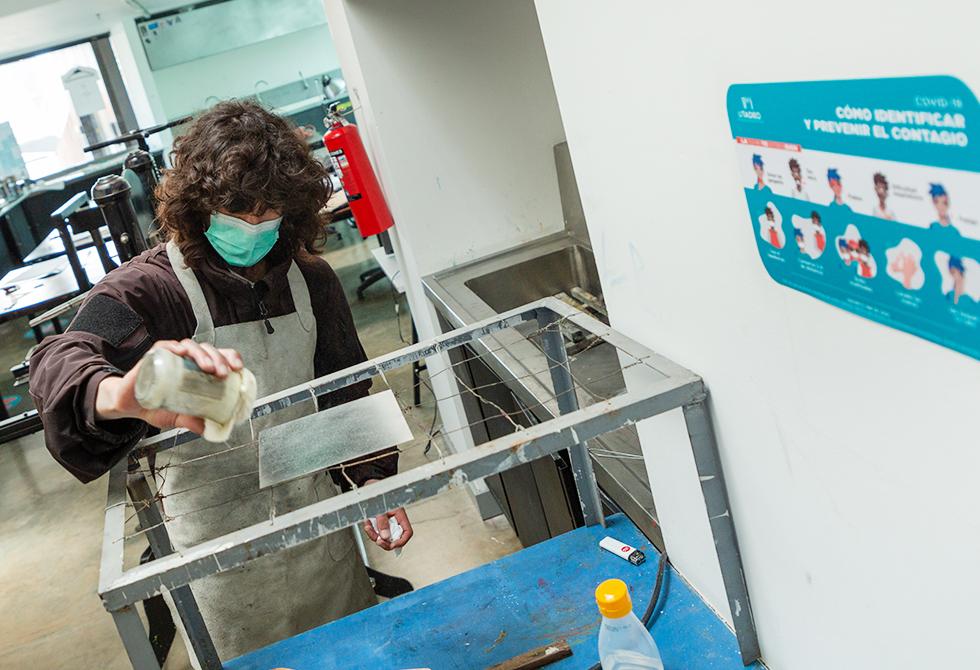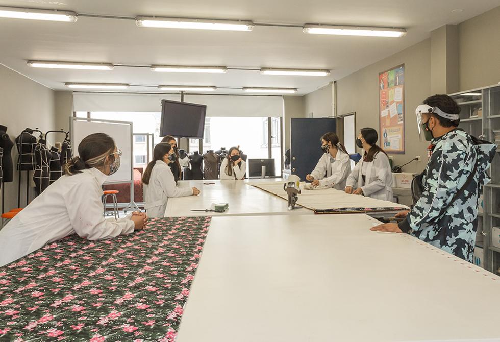 - En nuestro taller de costura, un grupo de estudiantes se prepara para su práctica, bajo la dirección del profesor Helmuth Andre BeltránNuestro taller de Artes Plásticas está en funcionamiento con la señalética y protocolos de bioseguridadLa profesora de Diseño Industrial, Liliana Miranda, explica a sus estudiantes el procedimiento práctico pendiente de su asignatura