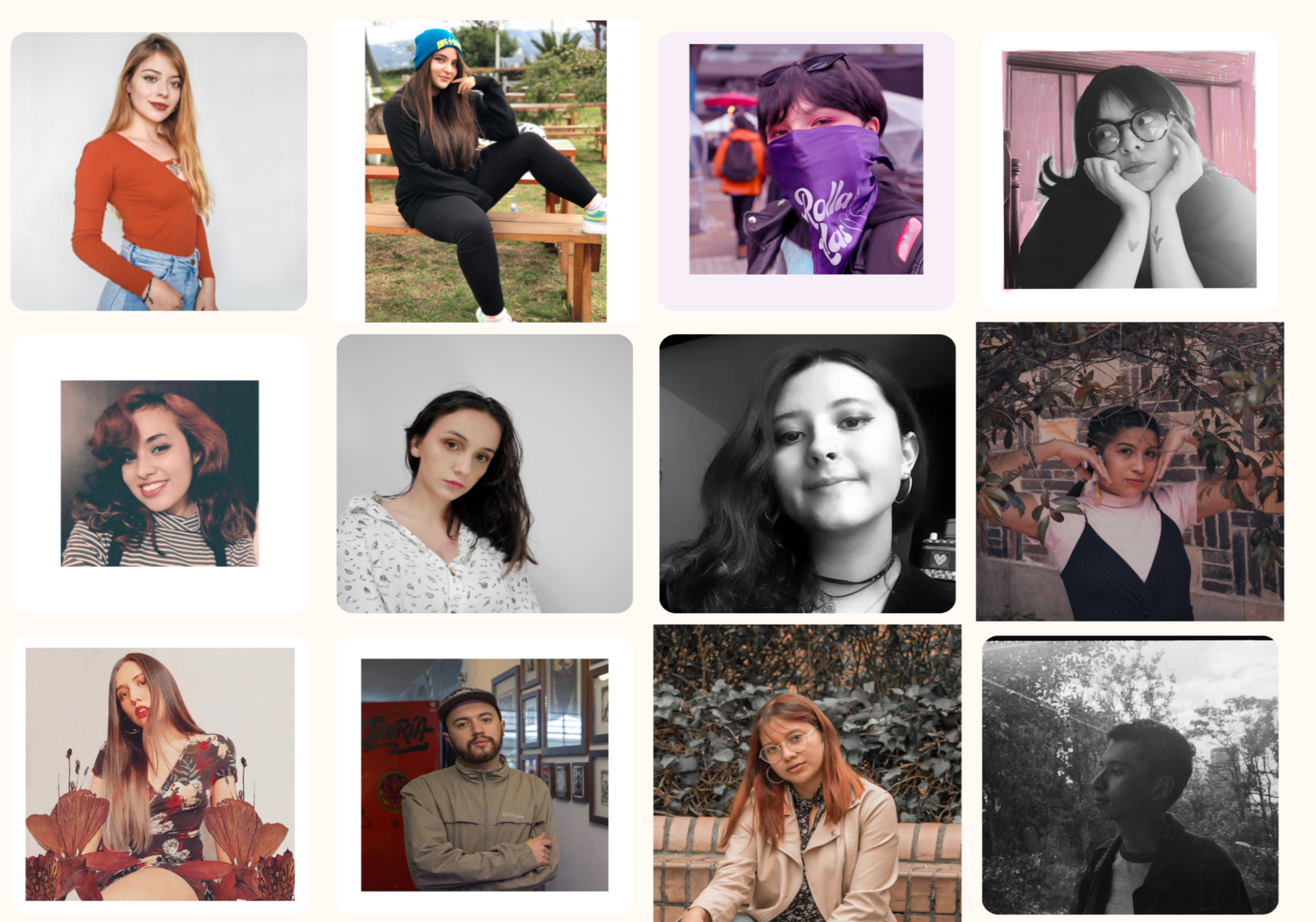 De izquierda a derecha, desde la parte superior, algunos de los estudiantes expositores del Estudio de Ilustración Avanzada: Melissa Zuluaga, Maria Fernanda Castro, Sofia Murcia, Juliana Prieto,  Zharick Jácome, Carolina Montaño, Laura Fernanda Bolaños, Paula Flechas, María Paula Acosta, Juan Felipe Ramírez, María Espítia y Jhonatan Nuñez.
