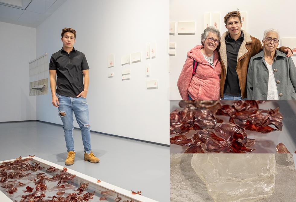 Abordando problemáticas que le han afectado a lo largo de su vida, como lo son el maltrato, la violencia y la migración forzada, experiencias que su familia ha sufrido, Andrés Felipe Bocanegra, desarrolló su obra artística durante la maestría; egresado del programa de Artes Plásticas de Utadeo y magíster en investigación y creación en arte de la Universidad Complutense de Madrid, Bocanegra explica que trabaja con materiales orgánicos porque le interesa que los materiales hablen por sí solos “me interesa que el material se comporte como se comparta el cuerpo humano: que viva, que habite un espacio, que muera”.