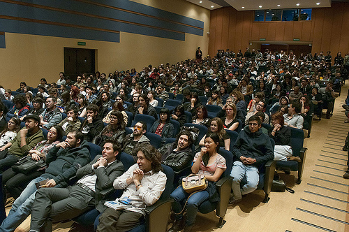 Estudiantes y profesores llenaron por completo el Aula Máxima Luis Córdoba Mariño.