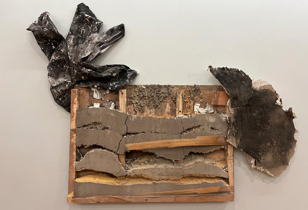 El cemento le enseñó a Felipe, que, aunque se crea que es un material muy fuerte, dependiendo la forma en la que se trabaje, también muestra fragilidad. Por eso a través de ese elemento explora el dolor y la ausencia. “Exhuma memorias, inhuma a los seres amados en el rasgado, la ruina, el desborde: rúbricas de la fragilidad humana”, palabras del curador de las obras, Fernando Cuevas.