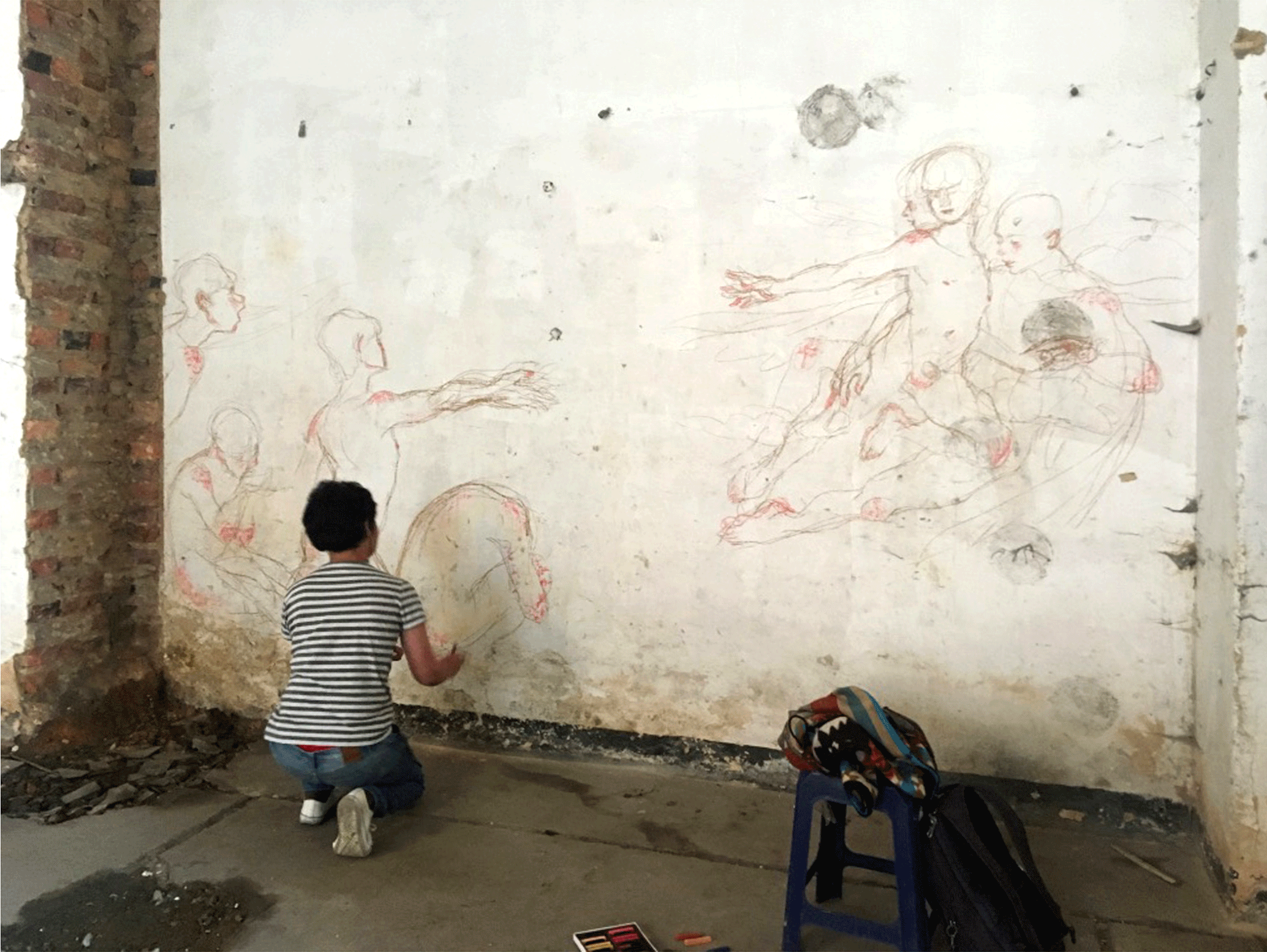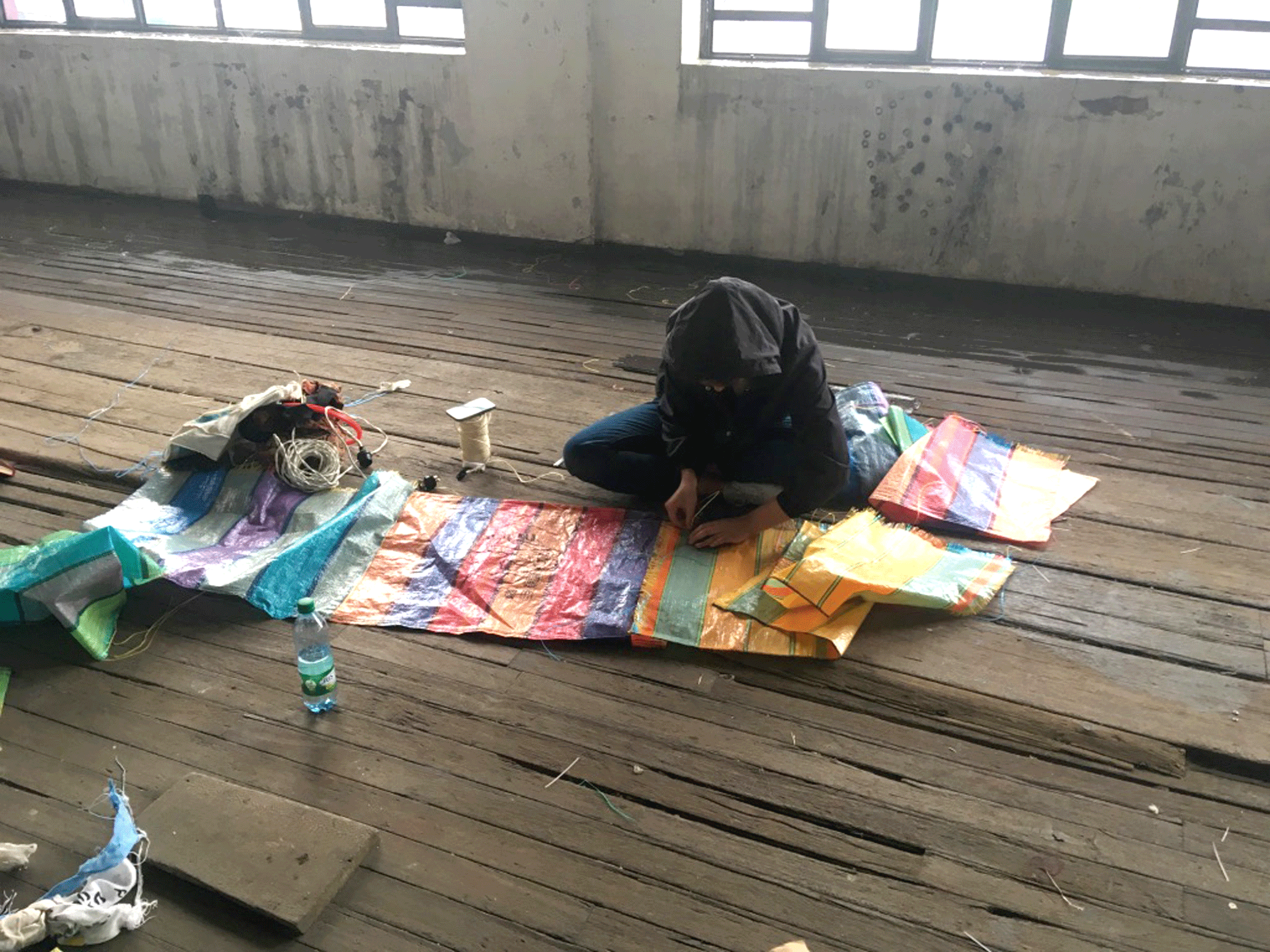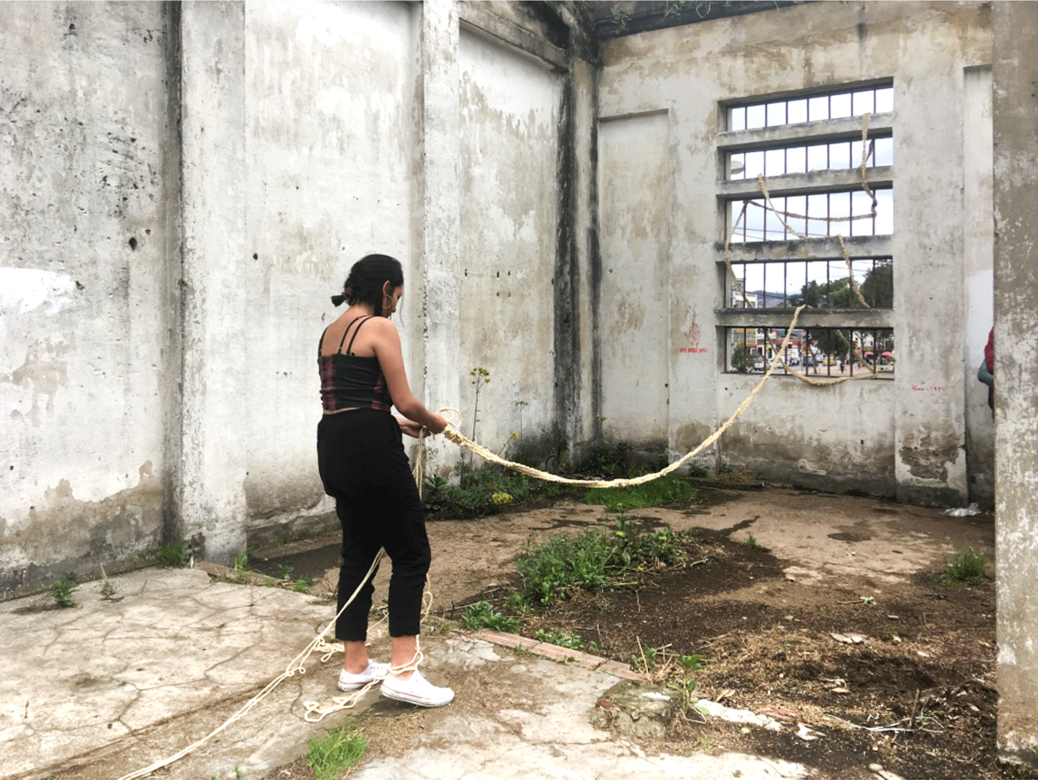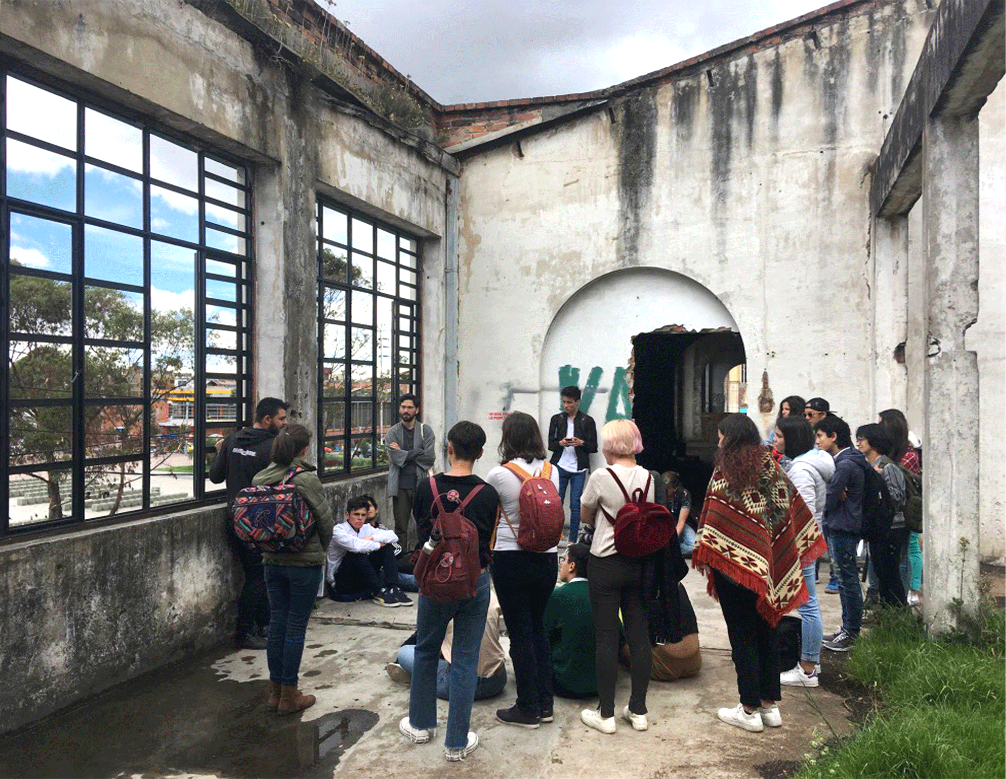 Los veintidós estudiantes del taller, junto con tres profesores de la Escuela de Artes, realizaron varios recorridos por este lugar, reconociendo los espacios, los materiales y las estéticas que lo caracterizan, en medio de las movilizaciones ciudadanas que marcaron el Paro Nacional del 21N. El encuentro con el edificio se prolongo a lo largo de varias sesiones en las que se narró parte de la historia de la fábrica, se generaron vivencias personales y colectivas, y se invitó a los estudiantes a crear una propuesta artística in situ, a partir de las apuestas del Taller de Plásticas I.