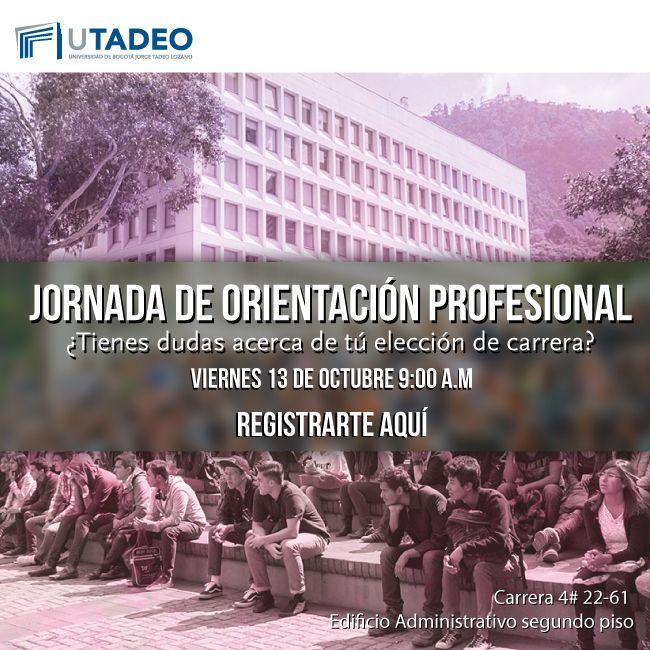 NovedadesJORNADA DE ORIENTACIÓN PROFESIONAL Compartir en Miércoles, Octubre 11, 2017JORNADA DE ORIENTACIÓN PROFESIONALREGISTRATE AQUÍ JORNADA DE ORIENTACIÓN PROFESIONAL Jornada de Orientación Profesional