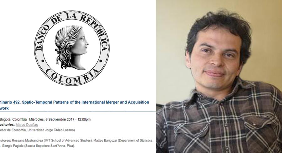 El profesor del departamento Marco Dueñas, presentó el documento titulado "TEMPORAL PATTERNS OF THE INTERNATIONAL MERGER AND ACQUISITION NETWORK" realizado junto con Rossana Mastrandrea (IMT School of Advanced Studies), Matteo Barigozzi (Department of Statistics, LSE) y Giorgio Fagiolo (Scuola Superiore Sant’Anna, Pisa).