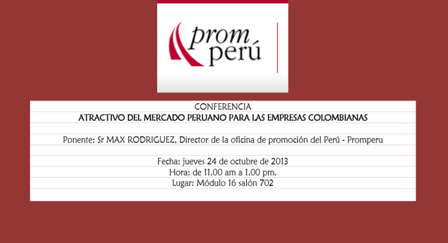El Programa de Comercio Internacional tiene el agrado de invitarlos a la conferencia "ATRACTIVO DEL MERCADO PERUANO PARA LAS EMPRESAS", ofrecida por el doctor MAX RODRIGUEZ, Director de la Oficina de Promoción del Perú -Promperú y hacemos extensiva esta invitación a todos los estudiantes de la facultad.