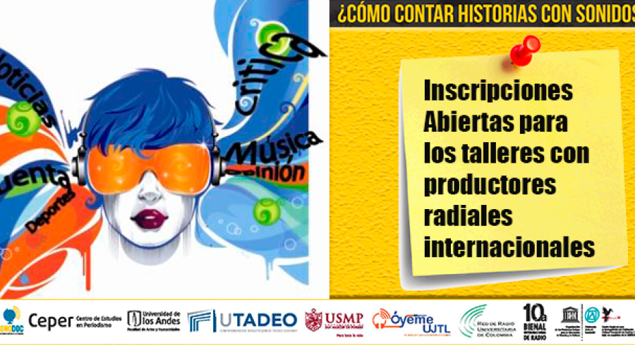 La invitación es para estudiantes, invitados internacionales e interesados del campo radiofónico para que se inscriban en uno de los talleres que tienen 20 cupos y se llevarán a cabo en la Universidad de Bogotá Jorge Tadeo Lozano los días: 5, 6, 7 y 8 de octubre de 2pm a 5pm, y el 9 de octubre de 9am a 12m.
