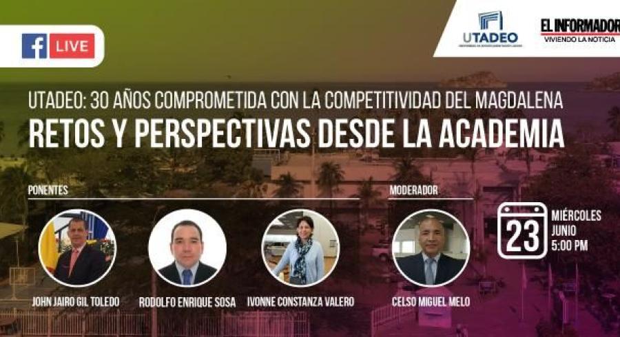 La Facultad de Ciencias Económicas y Administrativas , en una alianza con el diario EL INFORMADOR , uno de los medios de comunicación más reconocidos de la región, presentan el Facebook Live: “Conversemos sobre los retos y perspectivas del Magdalena, desde la academia”, que se desarrollará el próximo miércoles 23 de junio, a las 5:00 p.m., a través de la cuenta oficial de este medio local: @ElInformadorSM