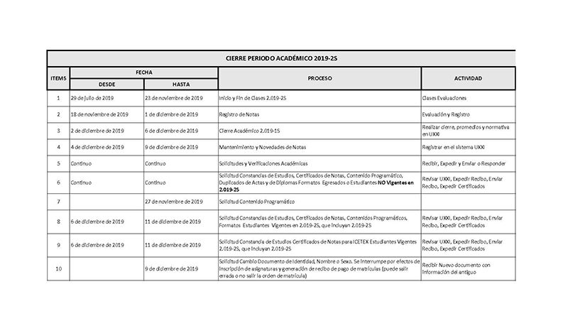 Con motivo del cierre académico del año 2019, la Oficina de Registro Académico y Grados atentamente te informa las fechas de cierre de las solicitudes académicos.
