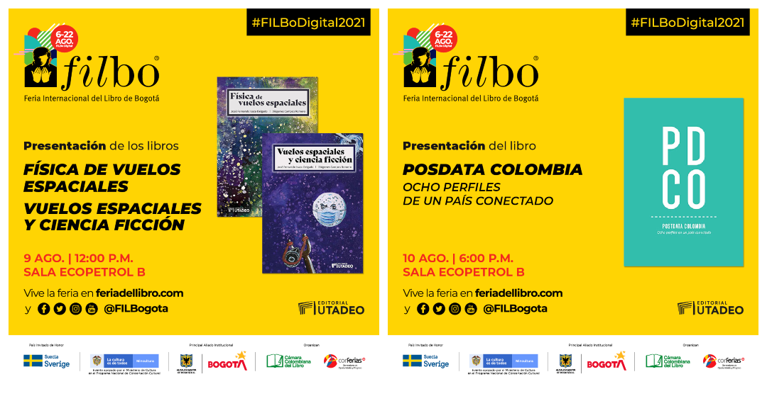 Para comenzar, el lunes 9 a las 12:OO m. en la Sala Ecopetrol B, se abrirá la agenda virtual de Editorial Utadeo en la Filbo con los textos: Física de vuelos espaciales y Vuelos espaciales y ciencia ficción, escritos por José Fernando Isaza y Diógenes Campos Romero; En estos dos libros, los autores hacen planteamientos desde la física y las ecuaciones sobre la ciencia detrás de la planeación de los vuelos espaciales desde la tierra, las perspectivas de la llegada a Marte y la relación que existe entre la física, los vuelos espaciales y los relatos de ciencia ficción tanto en la literatura como en las artes audiovisuales. Conoce más de este evento aquí.