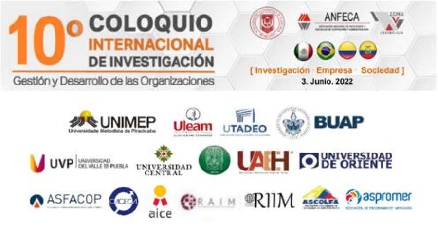 A Investigadores, Jóvenes Investigadores, Egresados y Docentes adscritos a Instituciones de Educación Superior Públicas y Privadas en Latinoamérica, a participar en el 10º Coloquio Internacional de Investigación “Gestión y Desarrollo de las Organizaciones”, a realizarse el 3 de junio de 2022 de manera virtual desde México, Colombia, Ecuador y Brasil.