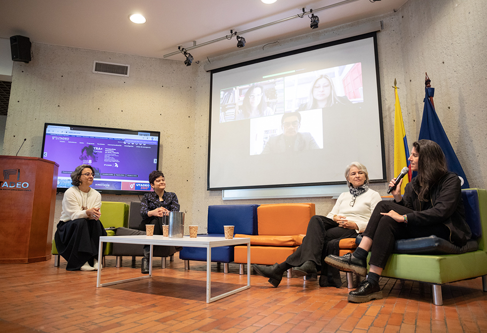 El primer panel del encuentro fue: Artes, ciencias, tecnología e innovación. Estuvo en cabeza de Bárbara Santos, artista visual bogotana. Adriana Gómez, Arq. PhD. en Sostenibilidad y Humanismo, además, profesora del Doctorado en Arte y Ciencia. Sabina Talero, Asesora de la Dirección de Ambiente y Desarrollo Sostenible del Departamento Nacional de Planeación. De forma virtual, también hicieron parte del panel: María Cristina Auscuntar, docente e investigadora; Carlos Córdoba, director de la Maestría de Diseño para la Innovación Social de la Universidad de Nariño y, desde México, la artista Tania Aedo.