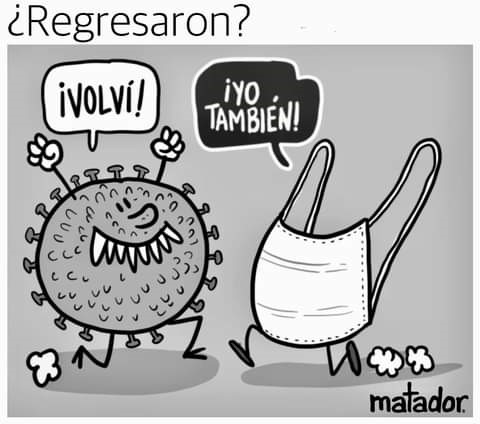 No olvidemos que dos viejos enemigos entre sí, y que pensábamos habían dejado de visitarnos no lo han hecho: regresaron el Covid-19, sujeto de mil caras que nos busca para afectarnos la salud, el cual ronda adentro y afuera de nuestra casa y el tapabocas, un buen amigo, que nos protege del Covid y que podemos llevar como una prenda de vestir.