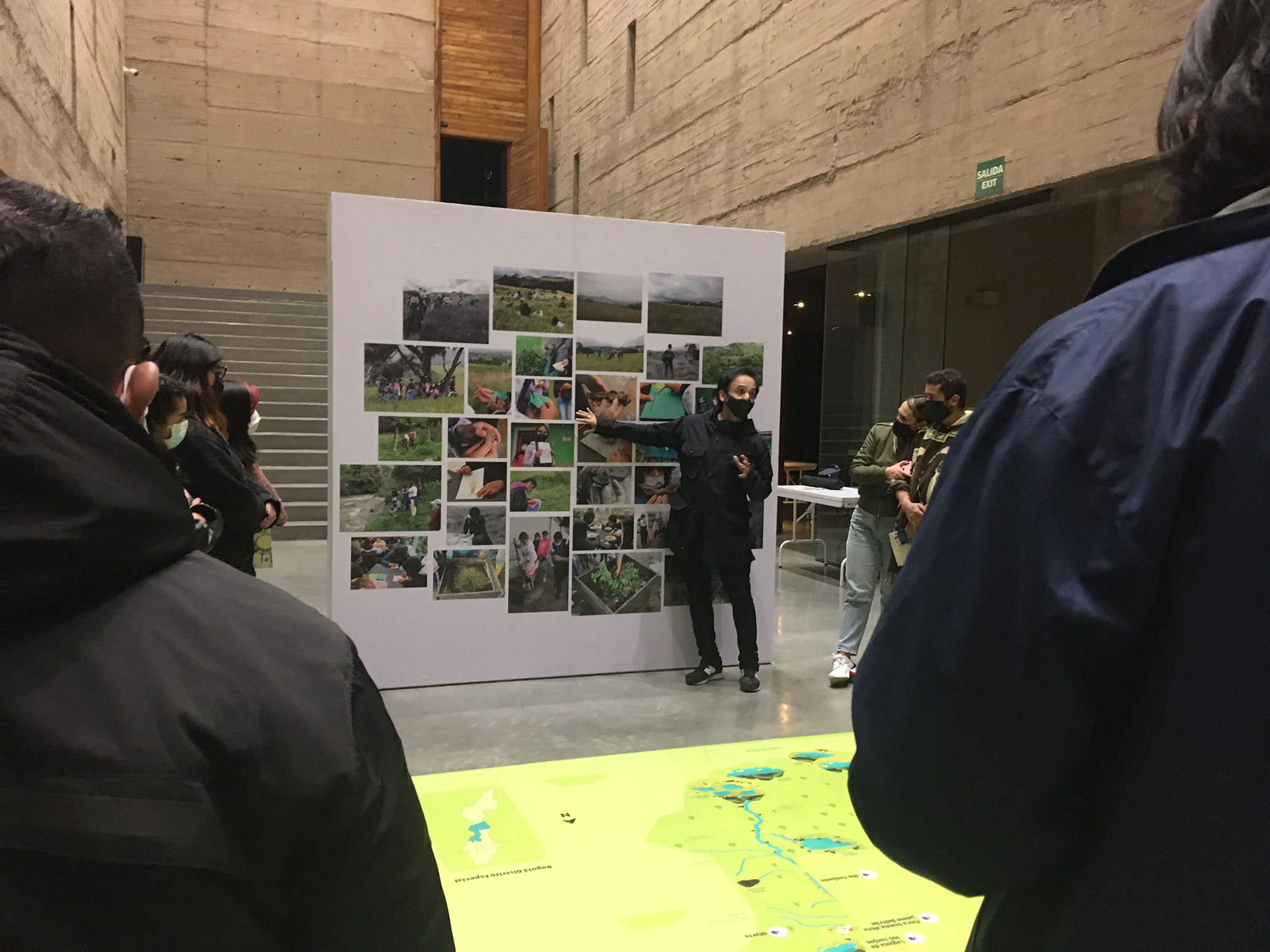 En Bogotá, la exposición en el Centro de memoria, Paz y Reconciliación se abrió con una charla y un recorrido por las distintas etapas del proceso: -Las propuestas artísticas de Berlín; -Los recorridos y talleres que se realizaron en Usme; -La elaboración de una serie de banderas que acogen símbolos ancestrales y enuncian varias preguntas sobre el hallazgo arqueológico, sobre el cuidado del medio ambiente y la cultura campesina de Usme; -La materialización de una cartografía sonora que recoge los relatos y las historias de los habitantes de la localidad. Esta exposición surge de un complejo proceso de pensamiento colectivo en el que se abordan temas relacionados con el territorio, la comunidad, el patrimonio culturall, la historia y el colonialismo; transitando entre el arte, la cultura, la academia y el contexto social.