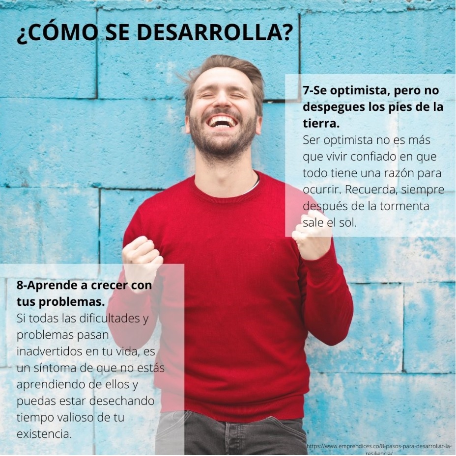 NovedadesCómo desarrollar la Resiliencia Compartir en Lunes, Enero 18, 2021“Cuando todo parezca ir contra ti, recuerda que el avión despega contra el viento, no a favor de él” Henry Ford.“Recuerda siempre que eres más grande que tus circunstancias, eres más que cualquier cosa que te pueda ocurrir.” Anthony Robbins resiliencia_1.jpg resiliencia_2.jpg resiliencia_3.jpg resiliencia_4.jpg resiliencia_5.jpg