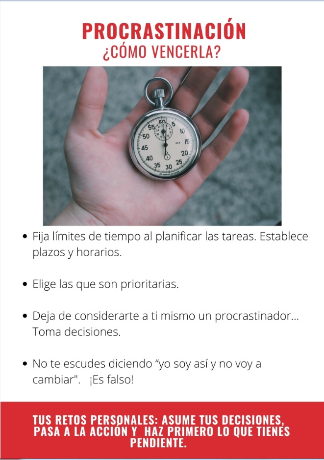 “La procrastinación hace difíciles las cosas fáciles, y hace aun más difíciles las cosas difíciles” (Mason Cooley)