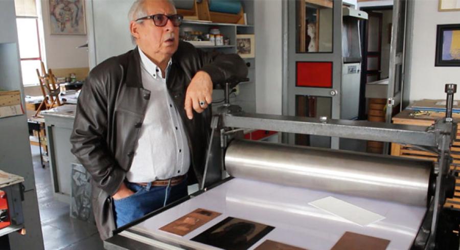 A lo largo de su vida el grabado ha estado siempre presente, “hay uno que data de 1962, que concursó en algunas oportunidades y obtuvo premios y menciones. Básicamente lo de él es el óleo pero a lo largo de los años encontró en el grabado otra forma de expresión bastante bonita, para él es un juego divertido y espontaneo donde él logra sentir la vida y sentirse a gusto, fue encontrando en este una forma de hablar del entorno social, una forma de expresarse y quizás quejarse de lo que le duele. Mi padre ha hecho varios libros de artista, comenzó con “el libraco de grabados”, de ahí su enamoramiento por el grabado sin dejar la pintura, pues nunca ha dejado la pintura”. También nos dijo que su padre siempre ha sido muy trabajador, pintar y grabar todos los días y los fines de semana era lo usual, así como también es un gran lector, “me enseñó a amar los libros y la poesía”.
