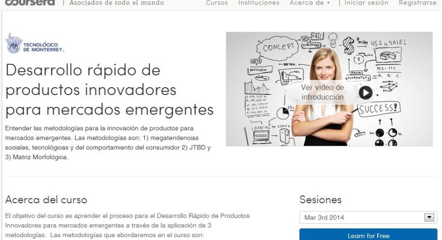 Coursera es una plataforma de educación virtual gratuita nacida en octubre de 2011 y desarrollada por académicos de la Universidad de Stanford con el fin de ofertar educación de calidad en forma masiva a la población mundial, con cursos en inglés y otros idiomas como el español, francés, italiano y chino. Coursera ofrece alrededor de 440 cursos en casi 20 categorías diferentes, los cuales han sido desarrollados por más de 80 prestigiosas universidades de 16 países del mundo. En la actualidad, más de 17 millones de personas, pertenecientes a 190 países, han estado en contacto con Coursera. A través de Coursera puedes disfrutar de clases en video, presentar exámenes interactivos e interactuar en línea con compañeros de clase o con profesores. Una vez aprobado el curso recibirás un certificado que valida el cumplimiento de los ejercicios de aprendizaje desarrollados en un determinado curso.