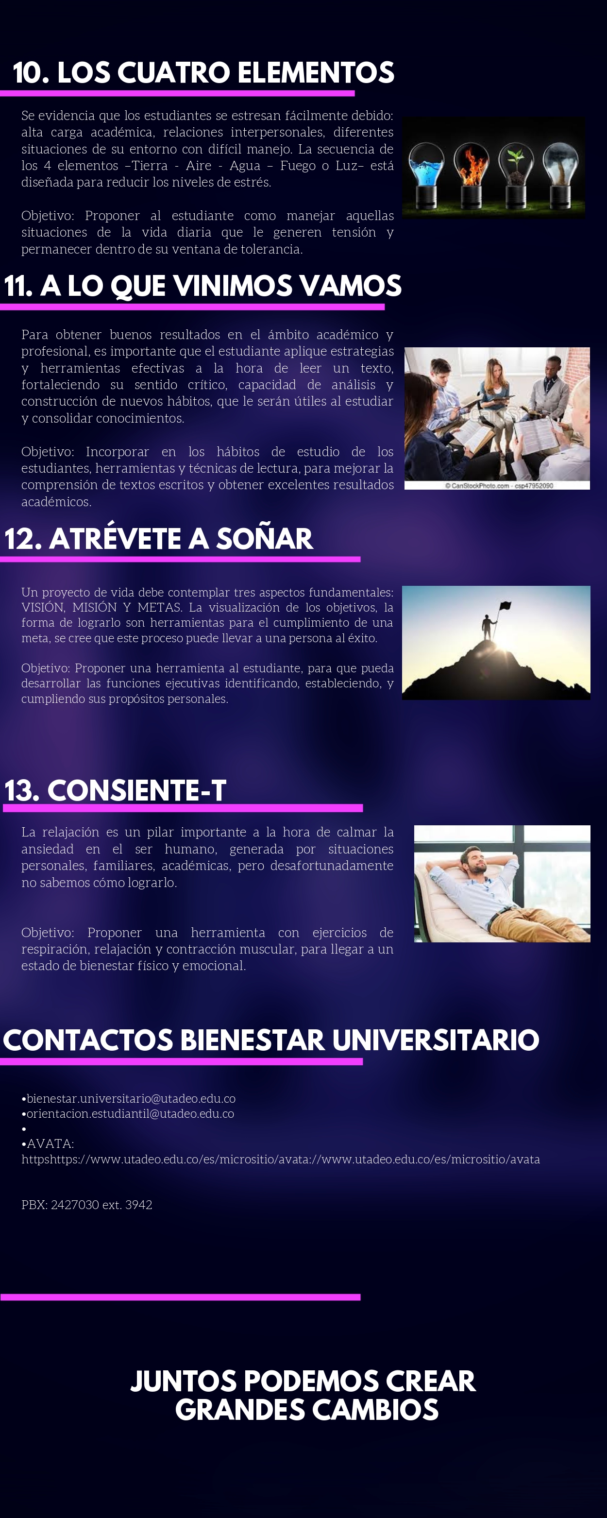 Si eres estudiante tadeísta, desde ya puedes consultar el portafolio de talleres que Bienestar tiene para ti e ir programando con tiempo a cuáles te quieres inscribir.