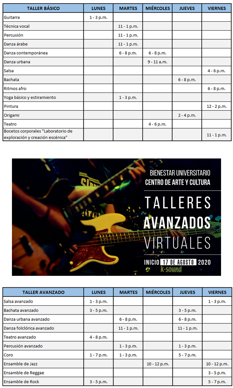Los talleres inician la semana del 17 de agosto de 2020. ¡No te quedes por fuera, cupos limitados!