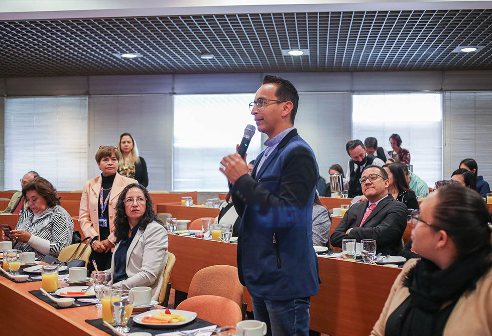 En el desayuno tuvimos la presencia del rector, Carlos Sánchez Gaitán, Felipe César Londoño, vicerrector académico, y los decanos, Olga Illera, Santiago Correa, además de la directora de mercadeo y matrícula de la Universidad, Elizabeth Torres.