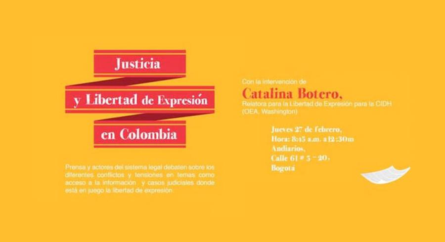 El próximo jueves 27 de febrero a las 8:45 a.m, se realizará el encuentro: “Justicia y Libertad de Expresión en Colombia”, en la sede de Andiarios (Calle 61 # 5 – 20, Bogotá).