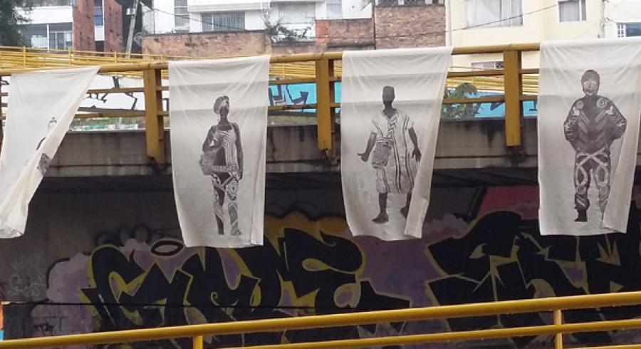 Producción y estampado de las 23 telas y la intervención/instalación de manera temporal sobre las barandas del puente curvo (Calle 26 con carrera 5ª), la cual se enseñó durante el día de inauguración de la nueva sede.