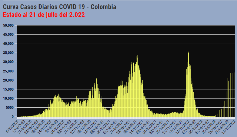 A 21 de julio se tiene un agregado de 6’247.634 casos positivos, durante los 83 días sin emergencia sanitaria se han detectado 154.967 casos; con respecto a la letalidad, en Colombia la pandemia ha dejado 140.603 personas fallecidas, de las cuales 806 han ocurrido desde el 1 de mayo; con respecto a casos activos, el 30 de abril se tenía 2.322 casos y para el 21 de julio se tienen 27.199; la ocupación promedio de las Unidades de Cuidado Intensivo ha estado en el 56,14% al corte de cada semana. Con respecto a las vacunas, la cifra a 12 de julio del Ministerio de Salud es de 86’474.076 dosis aplicadas.