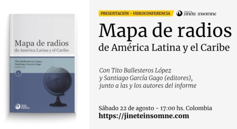 Ediciones del Jinete Insomne presentará un nuevo título de su colección Lenguafuera. En esta oportunidad será el libro titulado "Mapa de Radios de América Latina y el Caribe", editado por Tito Ballesteros (Radios de América) y Santiago García Gago (Radios Libres). La publicación reúne el análisis de 19 autores sobre la actualidad de la radio en sus países, basados en informes realizados por país en 2012, 2014, 2017 y 2020, con el objetivo de indagar sobre la cantidad de emisoras activas en la región, la relación entre FM y AM, la presencia de radio pública, comercial y sin fines de lucro, la situación normativa y más.