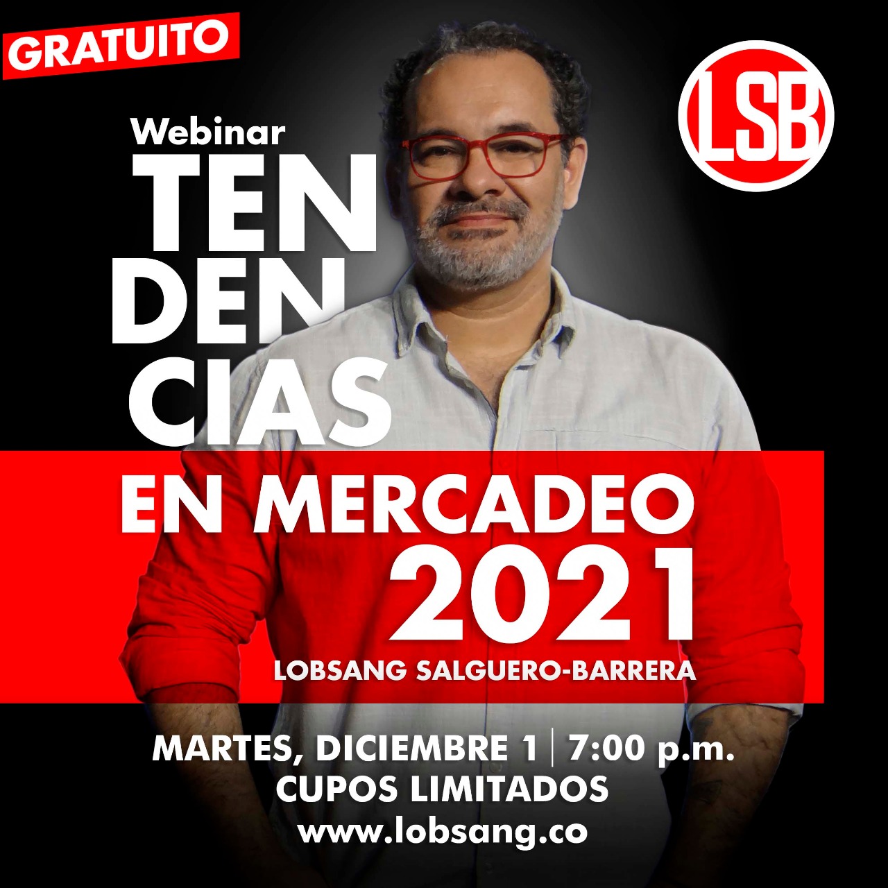 El egresado tadeísta y reconocido publicista Lobsang – Salguero-Barrera extiende una invitación a la comunidad en general de Utadeo, para participar en el webinar “Tendencias en mercadeo 2021”, el cual será gratuito, pero con cupo limitado, el próximo martes 1º de diciembre desde las 7:00 p.m., en donde se hablará de temas como: El 2020 en mercadeo, táctica y Estrategia y tendencias para el 2021.
