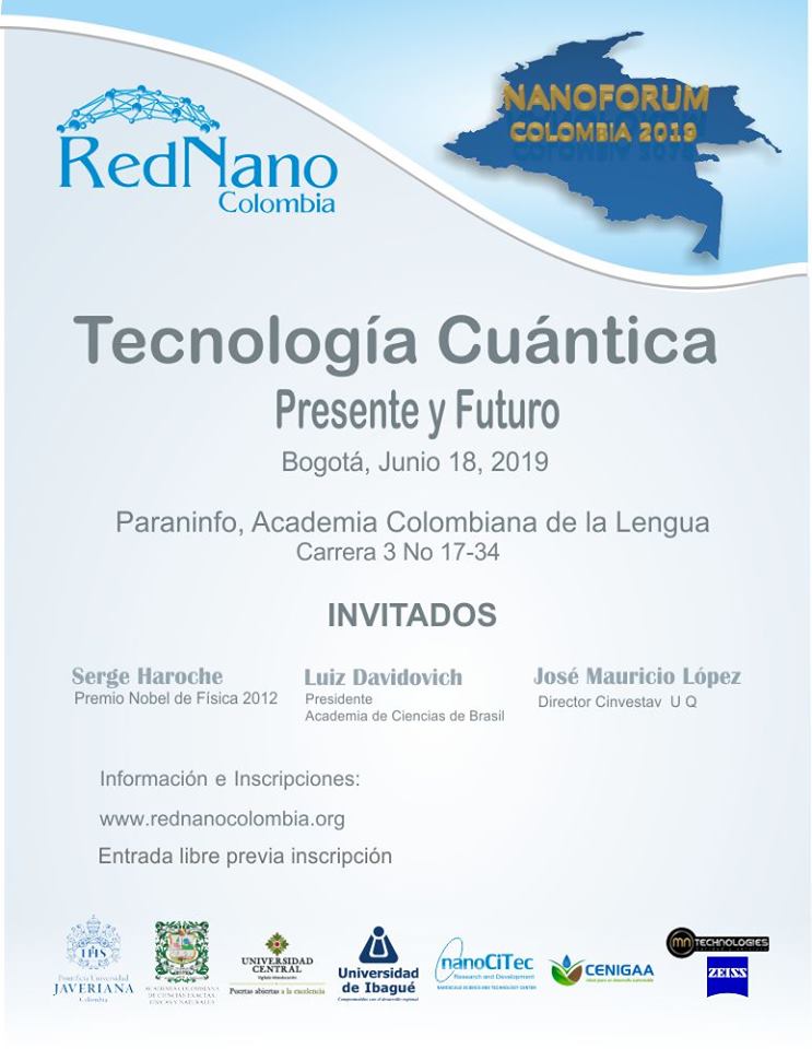 El evento, organizado por la Red Nano Colombia, la Universidad Javeriana y la Academia Colombiana de Ciencias Exactas, Físicas y Naturales, en colaboración con las universidades Central, de Ibagué, Nanocitec, MN Technologies y Zeiss, tendrá como conferencistas invitados a Serge Haroche, Premio Nobel de Física y miembro honorario de la Academia; Luis Davidovich, presidente de la Academia de Ciencias de Brasil, y José Mauricio López, director del Cinvestav (México).