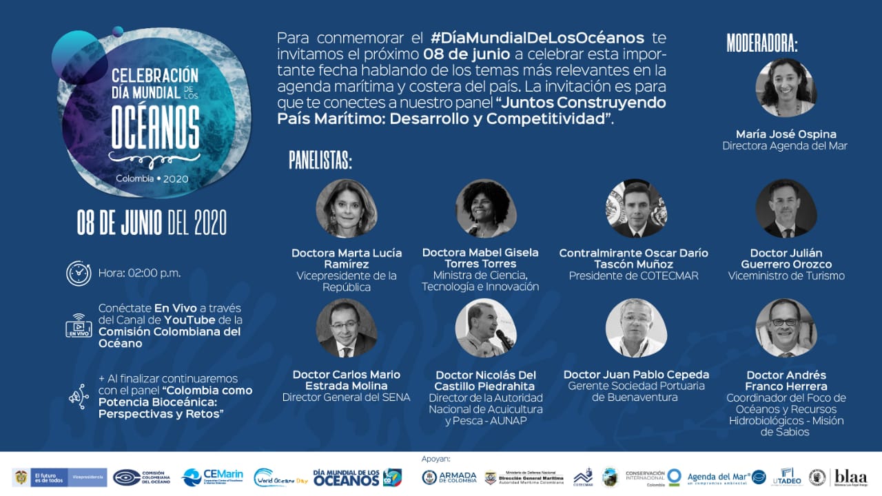 Bajo el lema “Construyendo país marítimo”, el evento iniciará a las 8:00 a.m., con el lanzamiento del podcast por los océanos. Posteriormente, se dará a conocer el “Manifiesto de los océanos”, documento en el que diferentes organizaciones han trabajado en torno a los territorios marinos y costeros del país, como respuesta a los desafíos y cambios urgentes que se requieren en nuestros mares, entre ellos la coyuntura de la pandemia actual, la perspectiva del nuevo CONPES marítimo para Colombia “Potencia bioceánica sostenible para el 2030”, y la proclamación de la Década de las Ciencias Oceánicas para el Desarrollo Sostenible, promulgada por la ONU recientemente.