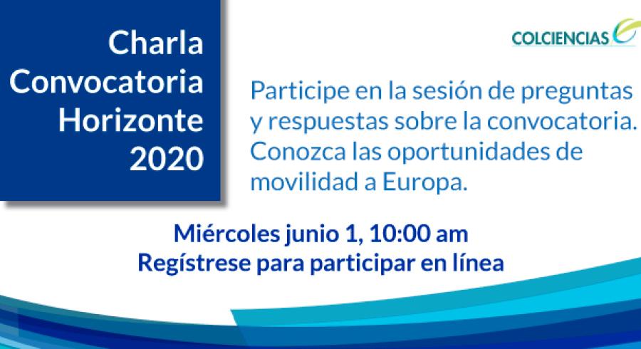 Colciencias invita a los interesados a participar en la charla virtual, que se llevará a cabo el próximo miércoles 1 de junio a las 10:00 am. En este espacio usted podrá hacer las preguntas que tenga acerca de las oportunidades de movilidad en Europa y sobre la Convocatoria Programa Horizonte 2020.