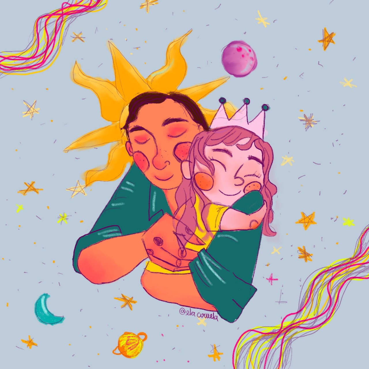 Cuando iba a abrazarlo abrí mis ojos. Desperté. Mis mejillas y la almohada estaban mojadas. Me levanté rápidamente y fui a buscarlo. Estaba en el porche sentado junto a mi mamá, percibía la tristeza en el ambiente. Me acerqué poco a poco a él, ambos sintieron mis pasos y me observaron. Mis pies cada vez daban pasos más largos con el objetivo de llegar a él, y cuando por fin lo hice, pude llorar y sentirme en paz otra vez. Él me correspondió el abrazo. Hubo un momento de silencio hasta que sentí mi hombro húmedo y sus palabras dulces.