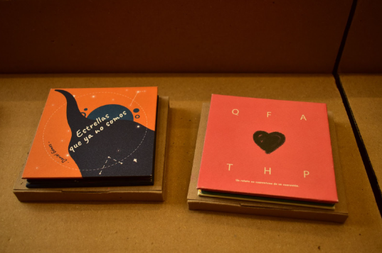 "[para que] el lector tenga un producto completamente distinto, entonces es un libro en forma de concertina, que cerrado tiene 10 cms, pero una vez se abre, el despliega como 80-85 cms permitiendo pues la lectura de una forma distinta, entonces queríamos enriquecer también el mundo editorial, con una propuesta completamente nueva desde lo que se propone e invitamos a veinte artistas a nivel nacional en nuestra primer a colección, a que nos contaran de qué forma los había cambiado en algo, el confinamiento y la pandemia, entonces fueron veinte ejercicios de catarsis"