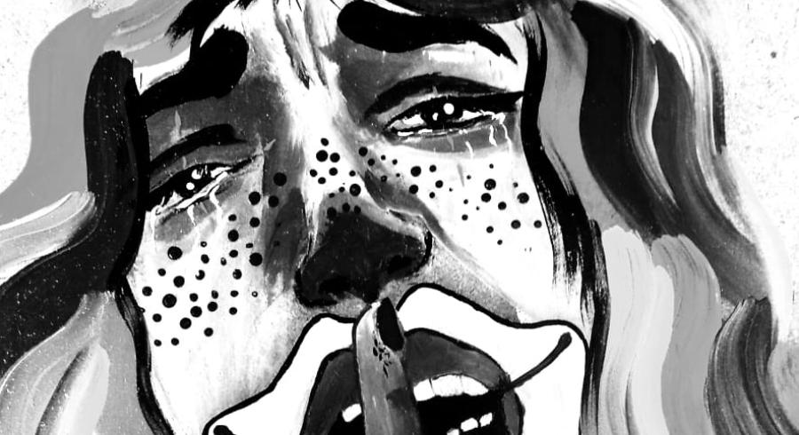 En aquel momento algo le sucedía a sus huesos, se sentía tan frágil como una oruga. Sus ojos se tornaron completamente negros y su visión se reducía solo a un limitado panorama de frente, careciendo de visión periférica. Destruida interiormente se ubicó en posición fetal y colocó su espalda flácida en aquella esquina de la pared rosa de su taller. Se desvaneció y cubrió su rostro en llanto, sentía dolor, ardor y rasquiña en su cuerpo. Se levantó e intentó caminar unos cuantos pasos a su habitación, junto a ella se asomaban unas escaleras de cerámica antigua con arabescos, tropezó con un charco de vómito de la noche anterior, pues hacía cinco días que no tenía ánimos de limpiar nada, su descomposición la llevó a un estado de ente sucio, tambaleo de izquierda a derecha y con sus manos hinchadas sangrientas resbaló del tubo del que pensaba sostenerse, su cabeza se inclinó de la inestabilidad y cayó abajo por las escaleras, al llegar al primer piso tenía una trágica fractura vertebral lo que ocasionó parálisis total.